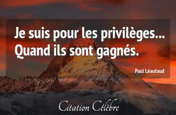 Je suis pour les privilèges... Quand ils sont gagnés.