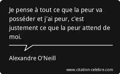 Je pense à tout ce que la peur va posséder et j'ai peur, c'est justement ce que la peur attend de moi.