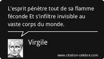 L'esprit pénètre tout de sa flamme féconde Et s'infiltre invisible au vaste corps du monde.