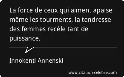 La force de ceux qui aiment apaise même les tourments, la tendresse des femmes recèle tant de puissance.