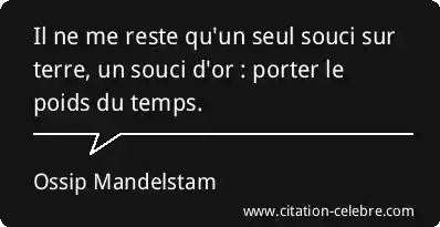 Il ne me reste qu'un seul souci sur terre, un souci d'or : porter le poids du temps.