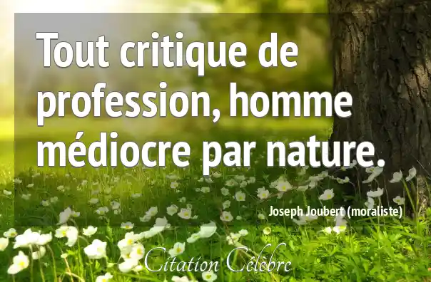 Tout critique de profession, homme médiocre par nature.