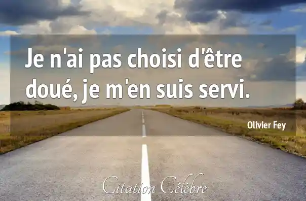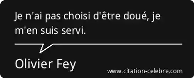Citation Olivier Fey suis : Je n'ai pas choisi d'être doué, je m'en suis servi....