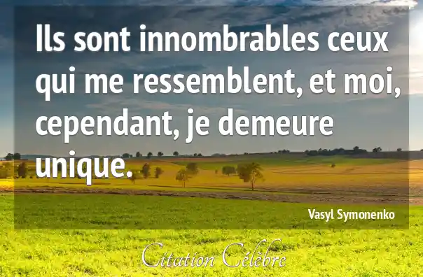 Ils sont innombrables ceux qui me ressemblent, et moi, cependant, je demeure unique.
