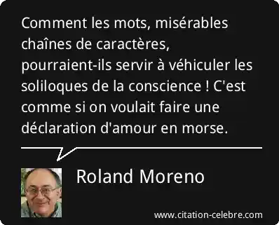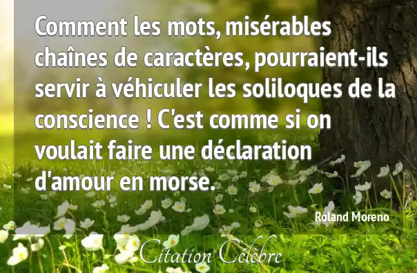 Comment les mots, misérables chaînes de caractères, pourraient-ils servir à véhiculer les soliloques de la conscience ! C'est comme si on voulait faire une déclaration d'amour en morse.