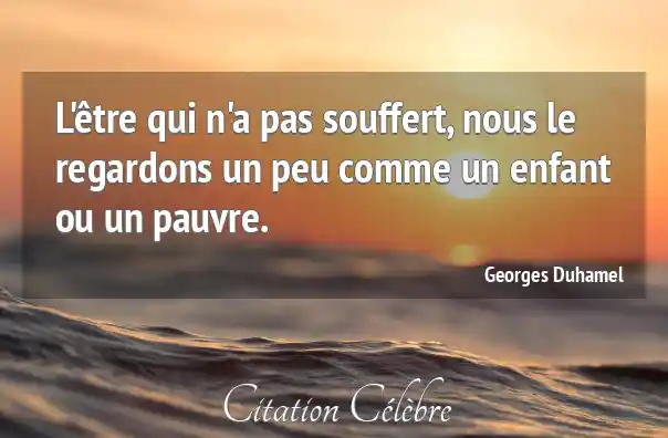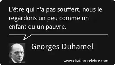 Citation Georges Duhamel enfant : L'être qui n'a pas souffert, nous le regardons un peu...
