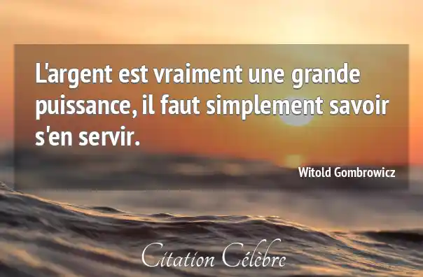 L'argent est vraiment une grande puissance, il faut simplement savoir s'en servir.
