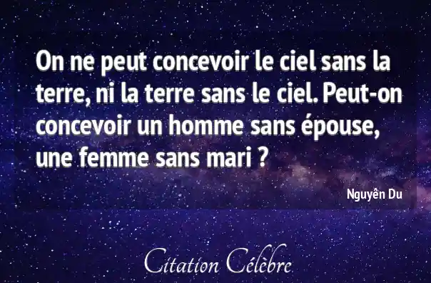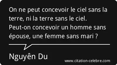 On ne peut concevoir le ciel sans la terre, ni la terre sans le ciel. Peut-on concevoir un homme sans épouse, une femme sans mari ?