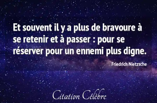 Et souvent il y a plus de bravoure à se retenir et à passer : pour se réserver pour un ennemi plus digne.