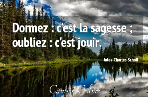Dormez : c'est la sagesse ; oubliez : c'est jouir.