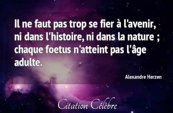 Il ne faut pas trop se fier à l'avenir, ni dans l'histoire, ni dans la nature ; chaque foetus n'atteint pas l'âge adulte.