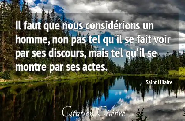 Il faut que nous considérions un homme, non pas tel qu'il se fait voir par ses discours, mais tel qu'il se montre par ses actes.