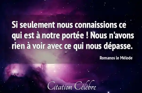 Si seulement nous connaissions ce qui est à notre portée ! Nous n'avons rien à voir avec ce qui nous dépasse.