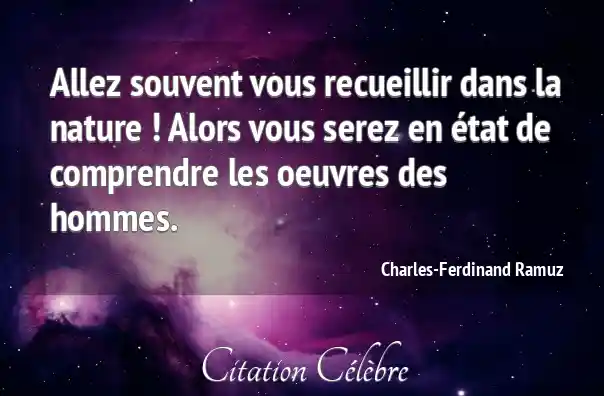 Allez souvent vous recueillir dans la nature ! Alors vous serez en état de comprendre les oeuvres des hommes.