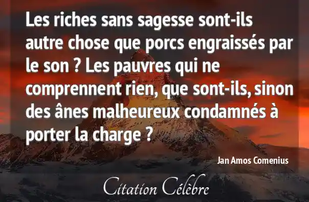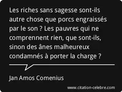 Les riches sans sagesse sont-ils autre chose que porcs engraissés par le son ? Les pauvres qui ne comprennent rien, que sont-ils, sinon des ânes malheureux condamnés à porter la charge ?