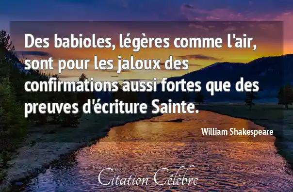 Des babioles, légères comme l'air, sont pour les jaloux des confirmations aussi fortes que des preuves d'écriture Sainte.