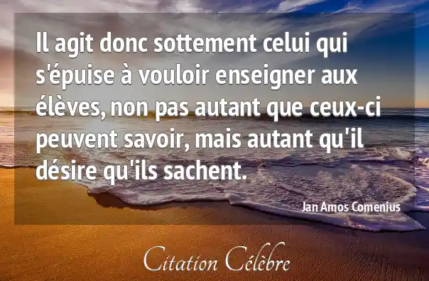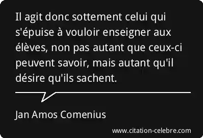 Il agit donc sottement celui qui s'épuise à vouloir enseigner aux élèves, non pas autant que ceux-ci peuvent savoir, mais autant qu'il désire qu'ils sachent.