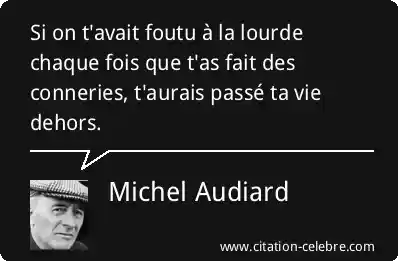 Si on t'avait foutu à la lourde chaque fois que t'as fait des conneries, t'aurais passé ta vie dehors.