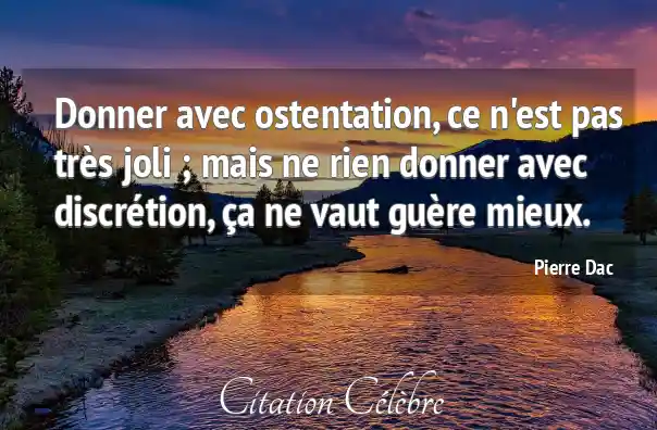 Donner avec ostentation, ce n'est pas très joli ; mais ne rien donner avec discrétion, ça ne vaut guère mieux.