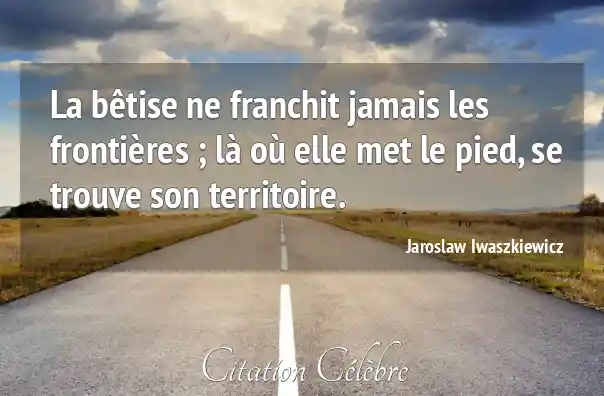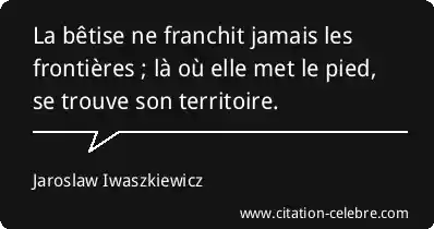 La bêtise ne franchit jamais les frontières ; là où elle met le pied, se trouve son territoire.