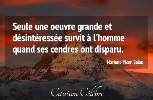Seule une oeuvre grande et désintéressée survit à l'homme quand ses cendres ont disparu.