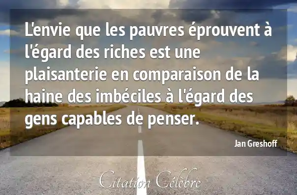L'envie que les pauvres éprouvent à l'égard des riches est une plaisanterie en comparaison de la haine des imbéciles à l'égard des gens capables de penser.