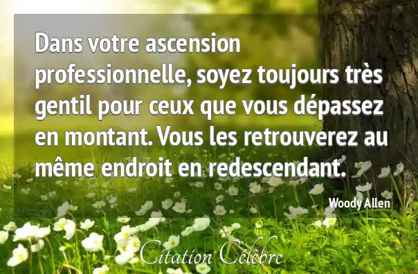 Dans votre ascension professionnelle, soyez toujours très gentil pour ceux que vous dépassez en montant. Vous les retrouverez au même endroit en redescendant.