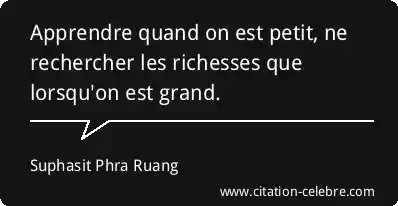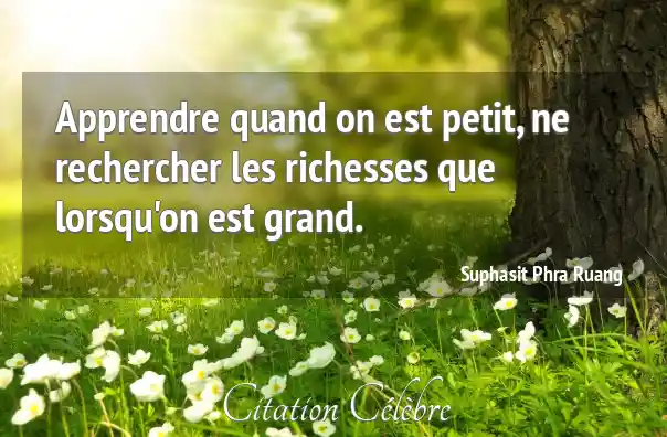 Apprendre quand on est petit, ne rechercher les richesses que lorsqu'on est grand.