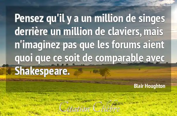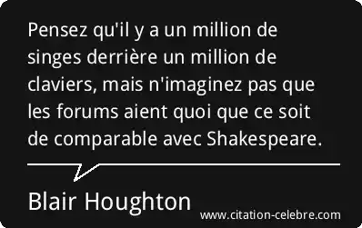 Pensez qu'il y a un million de singes derrière un million de claviers, mais n'imaginez pas que les forums aient quoi que ce soit de comparable avec Shakespeare.