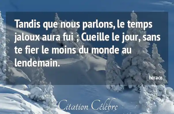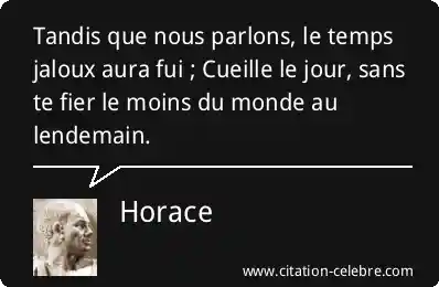 Tandis que nous parlons, le temps jaloux aura fui ; Cueille le jour, sans te fier le moins du monde au lendemain.