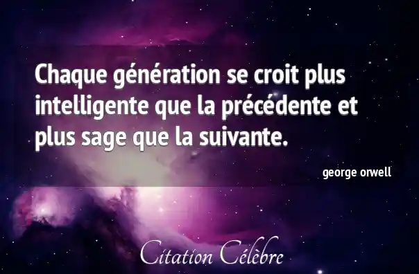Chaque génération se croit plus intelligente que la précédente et plus sage que la suivante.