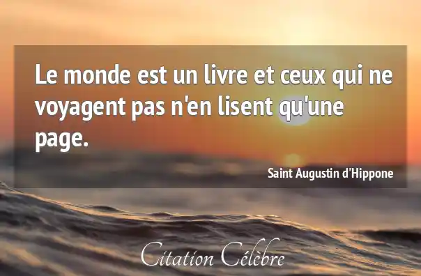 Le monde est un livre et ceux qui ne voyagent pas n'en lisent qu'une page.