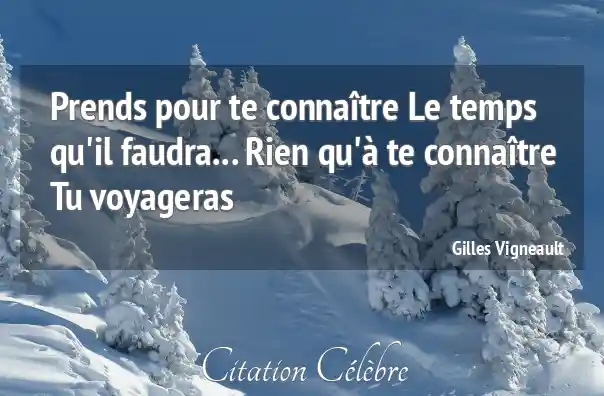 Prends pour te connaître Le temps qu'il faudra... Rien qu'à te connaître Tu voyageras