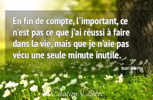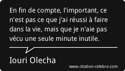 En fin de compte, l'important, ce n'est pas ce que j'ai réussi à faire dans la vie, mais que je n'aie pas vécu une seule minute inutile.