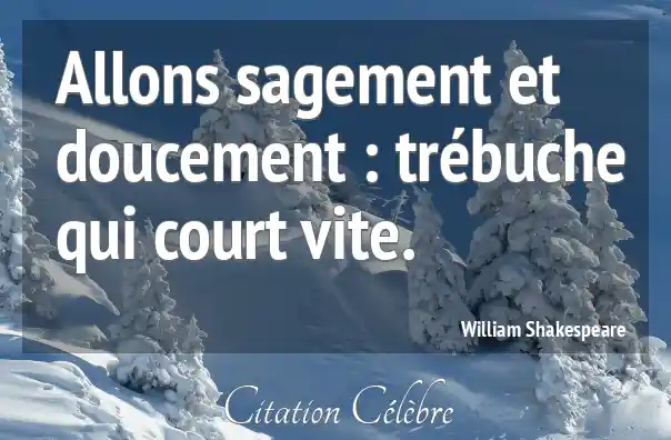 Allons sagement et doucement : trébuche qui court vite.