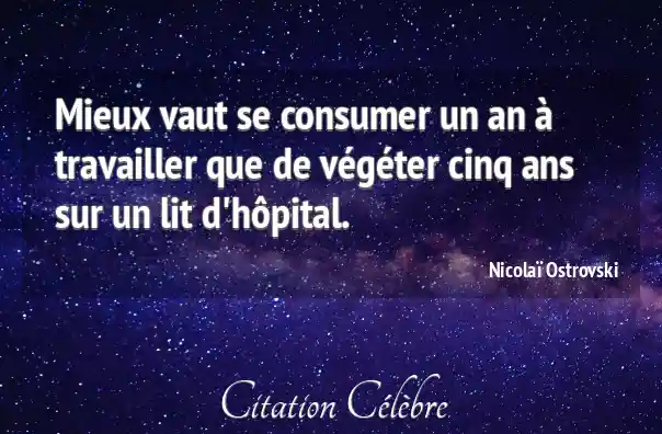 Mieux vaut se consumer un an à travailler que de végéter cinq ans sur un lit d'hôpital.