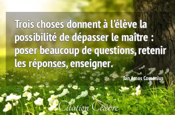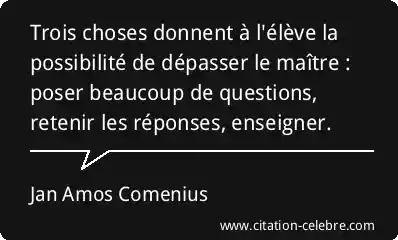Trois choses donnent à l'élève la possibilité de dépasser le maître : poser beaucoup de questions, retenir les réponses, enseigner.