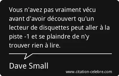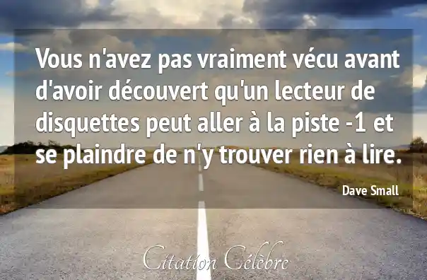 Vous n'avez pas vraiment vécu avant d'avoir découvert qu'un lecteur de disquettes peut aller à la piste -1 et se plaindre de n'y trouver rien à lire.