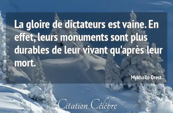 La gloire de dictateurs est vaine. En effet, leurs monuments sont plus durables de leur vivant qu'après leur mort.