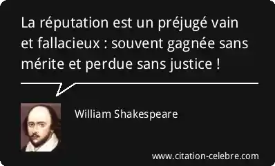 La réputation est un préjugé vain et fallacieux : souvent gagnée sans mérite et perdue sans justice !