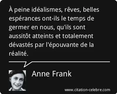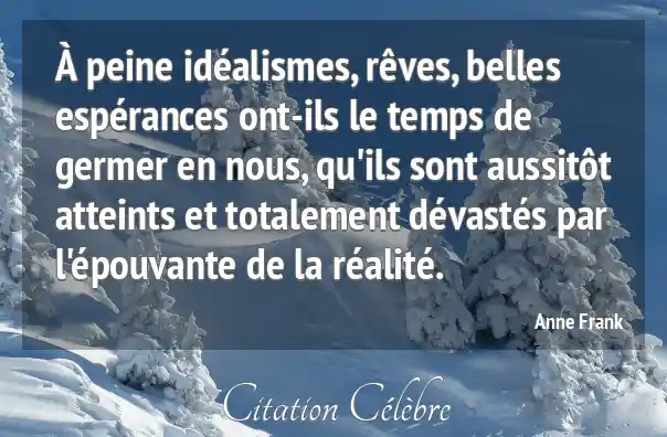 À peine idéalismes, rêves, belles espérances ont-ils le temps de germer en nous, qu'ils sont aussitôt atteints et totalement dévastés par l'épouvante de la réalité.
