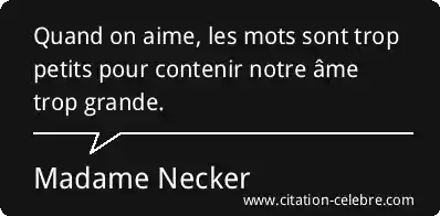 Citation Madame Necker ame : Quand on aime, les mots sont trop petits pour contenir...