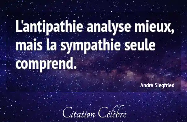 L'antipathie analyse mieux, mais la sympathie seule comprend.