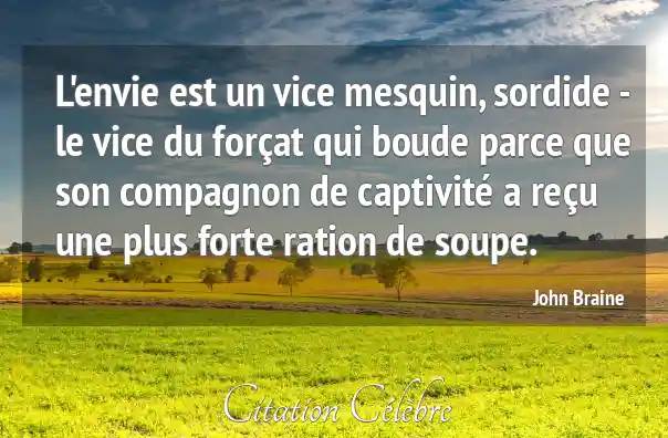 L'envie est un vice mesquin, sordide - le vice du forçat qui boude parce que son compagnon de captivité a reçu une plus forte ration de soupe.
