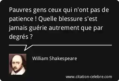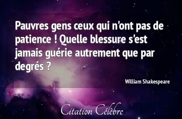Pauvres gens ceux qui n'ont pas de patience ! Quelle blessure s'est jamais guérie autrement que par degrés ?