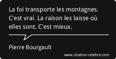 La foi transporte les montagnes. C'est vrai. La raison les laisse où elles sont. C'est mieux.