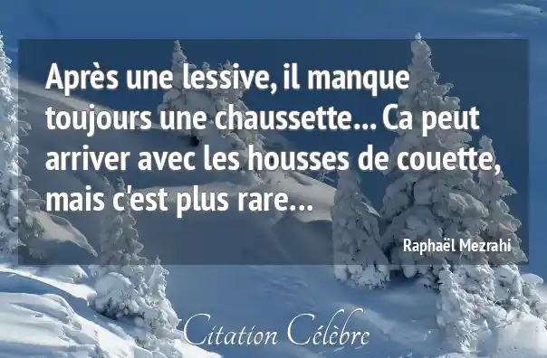 Après une lessive, il manque toujours une chaussette... Ca peut arriver avec les housses de couette, mais c'est plus rare...