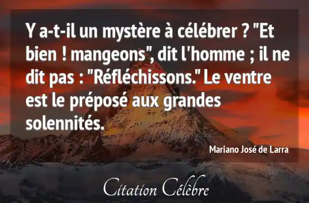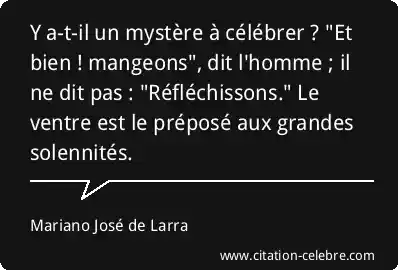 Y a-t-il un mystère à célébrer ? "Et bien ! mangeons", dit l'homme ; il ne dit pas : "Réfléchissons." Le ventre est le préposé aux grandes solennités.