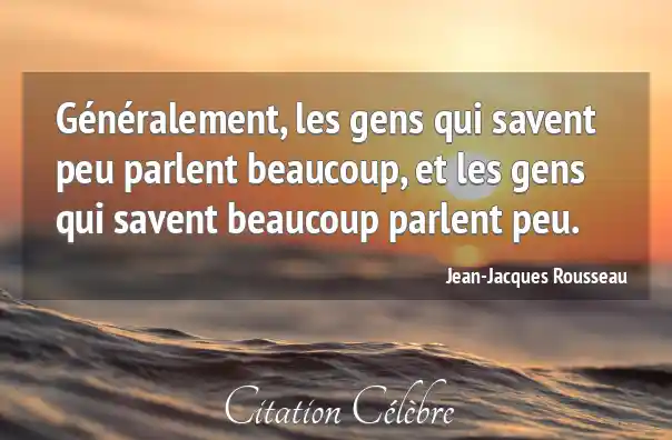 Généralement, les gens qui savent peu parlent beaucoup, et les gens qui savent beaucoup parlent peu.