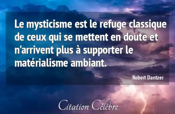 Le mysticisme est le refuge classique de ceux qui se mettent en doute et n'arrivent plus à supporter le matérialisme ambiant.